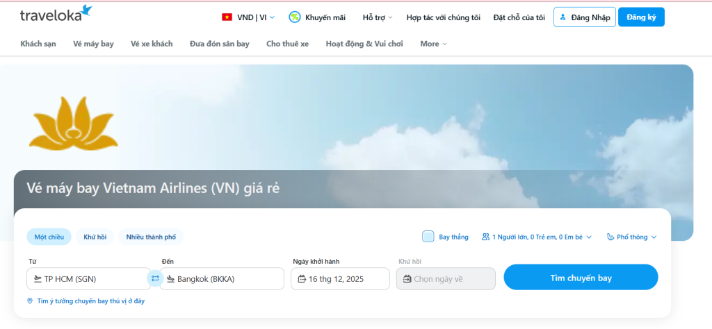 Traveloka là nền tảng du lịch và dịch vụ đặt vé trực tuyến hàng đầu Đông Nam Á, mang đến giải pháp đặt vé máy bay thông minh, nhanh chóng và tiết kiệm cho hàng triệu người dùng. Với giao diện thân thiện, thao tác đơn giản và khả năng so sánh giá minh bạch từ nhiều hãng hàng không, Traveloka giúp bạn dễ tìm tìm vé máy bay Vietnam Airlines và các hãng hàng không khác phù hợp nhất chỉ trong vài phút.