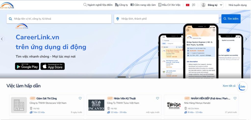 Trong khi đó, website CareerLink.vn là công cụ tuyển dụng trực tuyến mạnh mẽ với hơn 100.000 lượt truy cập mỗi ngày và kho dữ liệu trên 750.000 hồ sơ chất lượng cao, cập nhật 1.000 hồ sơ mới mỗi ngày. Doanh nghiệp dễ dàng đăng tin tuyển dụng nhanh chóng, tiếp cận ứng viên tiềm năng với chi phí hợp lý. Bộ phận chăm sóc khách hàng luôn sẵn sàng hỗ trợ để tối ưu hóa hiệu quả tuyển dụng.